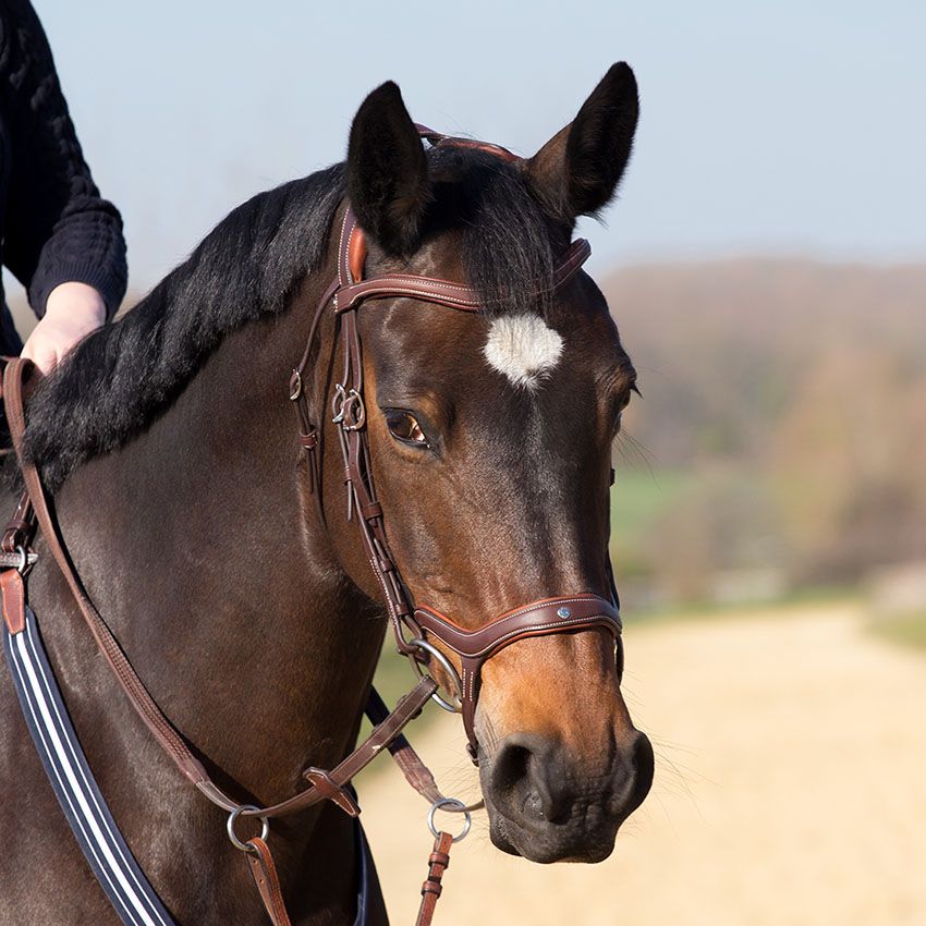 Pannebånd, nesereim og nakkestykke er foret med kalveskinn, og er med de nye Antarès spennene.