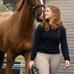 Klassisk damegenser med rund hals i myk bomull–kasjmirblanding. Rent design og luksuriøs følelse – et basisplagg både på og utenfor ridebanen.