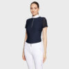 Ribbet elastisk krage og ender Samshield-blazon strikket med firkantede Swarovski®-krystaller